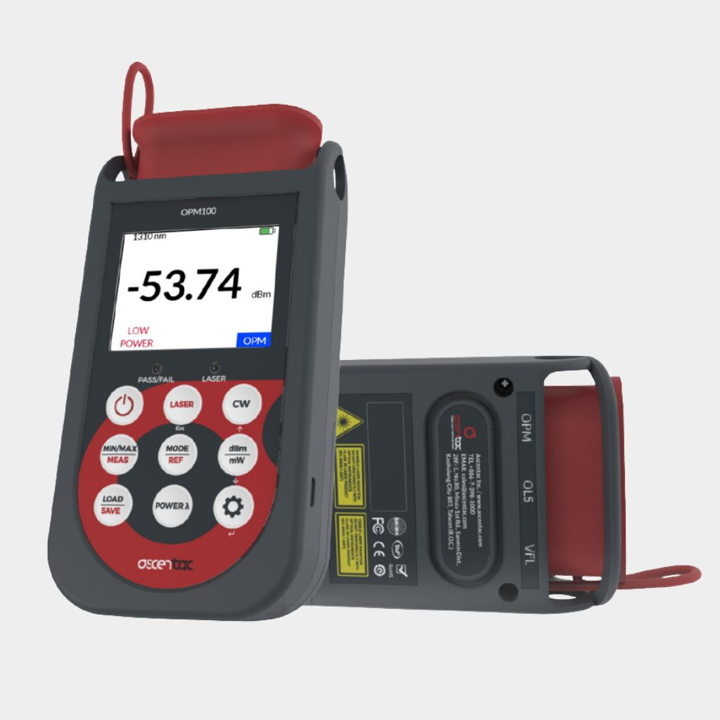 Ascentac OPM120 系列光功率計,可進行寬動態範圍且高精度光功率量測,提供動態範圍 +6 至 -70dBm 或 +26 至 -50dBm,靈敏度高、線性好、測試速度快,操作簡易,可選購可見光源故障定位器 (VFL) 之功能。