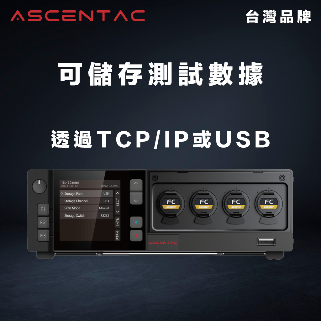 Ascentac TestMate2400 系列可透過網路或串接介面連線測試,測試資料可使用 USB 儲存,也可透過網路介面儲存至電腦。