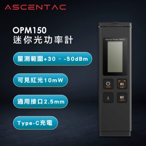 Ascentac KitMate100 系列為光纖工具組,包含多功能收納包、迷你 光功率計、光纖切割刀、扁平光纜剝皮器、三口光纖剝線鉗、按壓式酒精瓶。可用於光纖通訊工程作業中的光功率檢測、線路障礙點定位、 光纖剝皮、清潔及切割,並可進行光纖冷接作業。